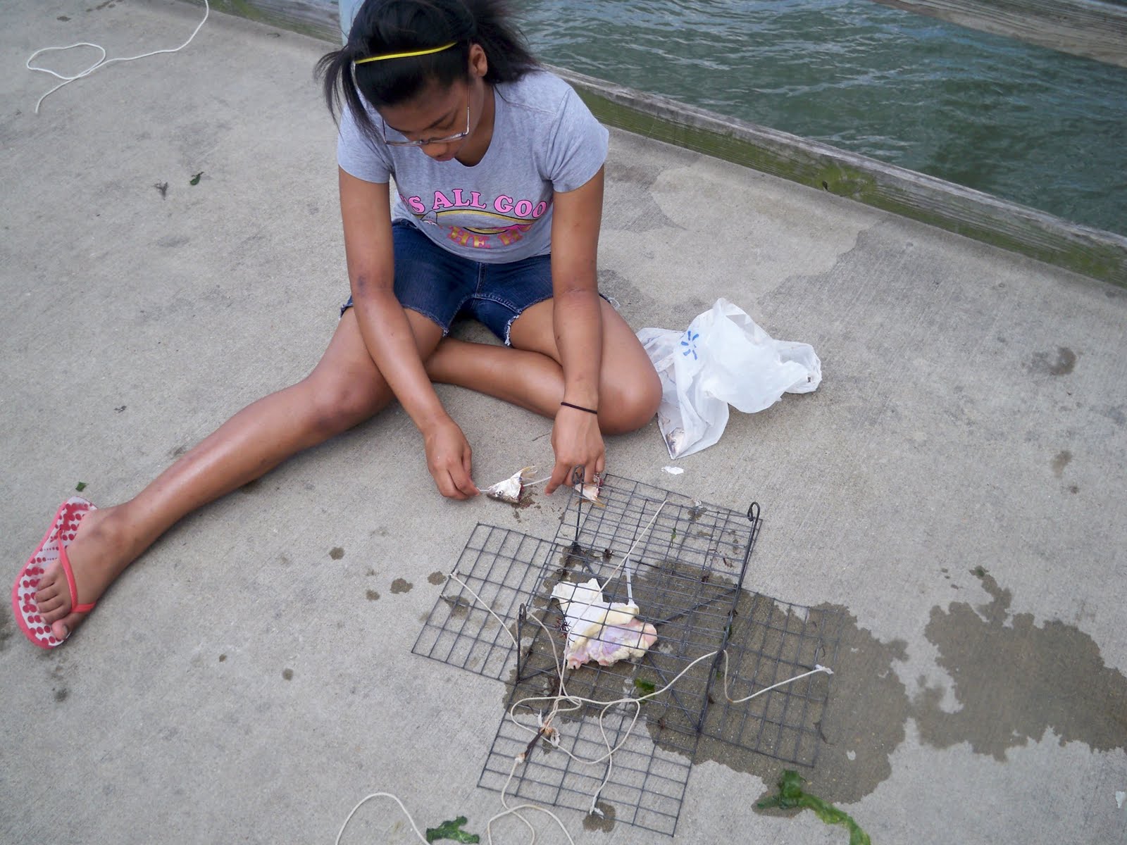 Ashley (my youngest sis) is a brave soul. She stringed ALL my bait and got EVERY crab I caught and brought them back to the bucket. I just couldn't handle the pregnancy. I swear, I thought I was stronger than that lol